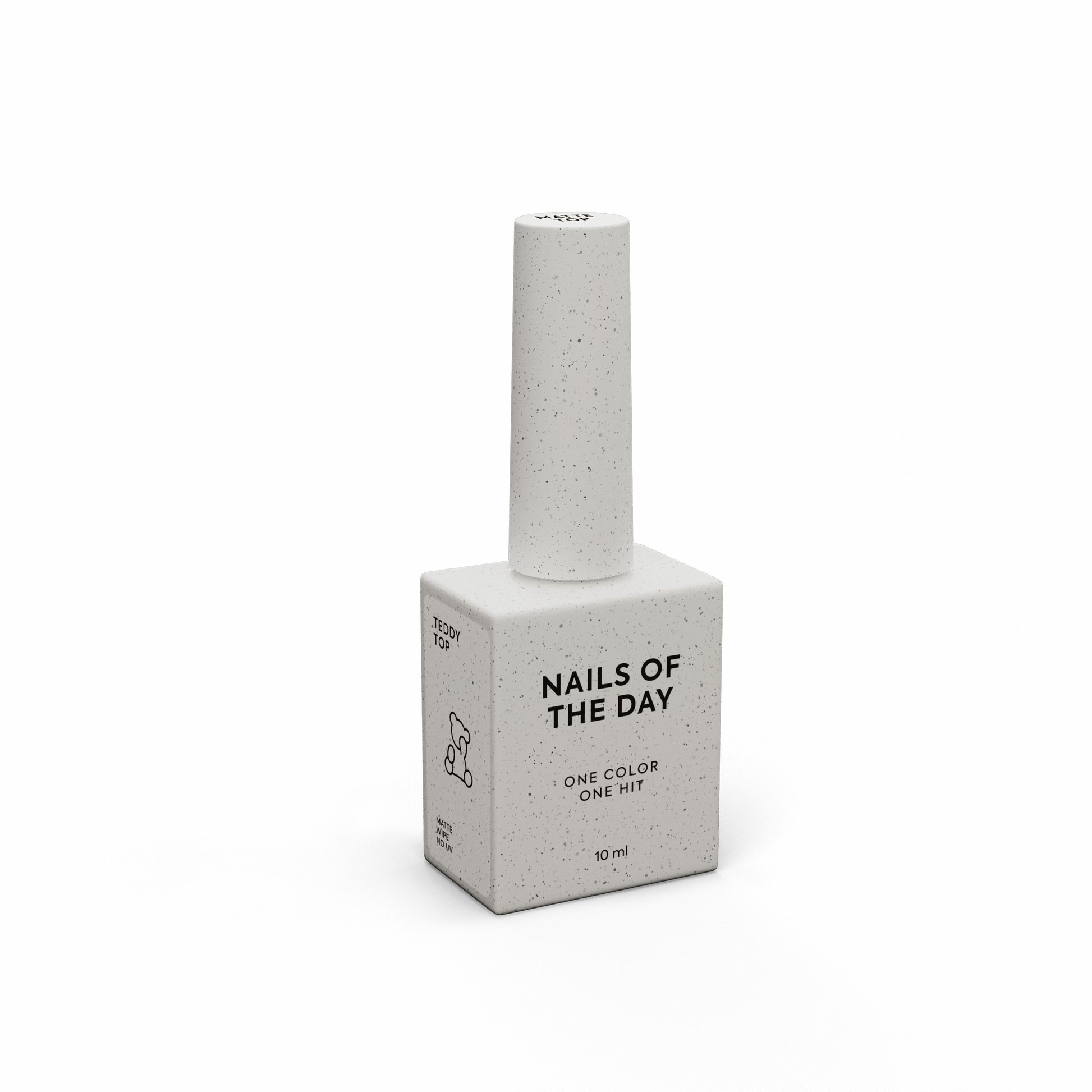 Nailsoftheday TEDDY TOP is a matte plush top with a sticky layer, a new formula. Preserves the quality of the plush villi throughout the duration of the manicure. Does not turn yellow. Protects the coating from scratches, chips and rubbing, without UV filters. Thanks to the modern formula, it perfectly aligns and tightly covers the nail plate. Medium consistency.