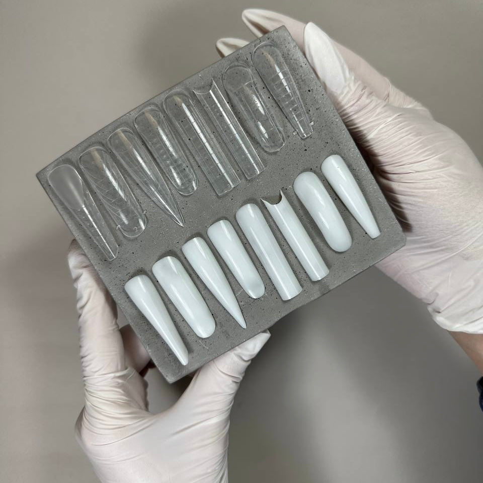 Las formas son elásticas, mantienen bien su forma y se eliminan fácilmente después de la polimerización con cualquier material, no se doblan al presionar la arquitectura con pinzas o alicates finos especiales. Adecuado para usar con varios tipos de materiales: poligel, gel acrílico, geles constructores y gel-gelatina. La forma mejorada creará una arquitectura de uñas sin demasiado esfuerzo, incluso para principiantes en el modelado.